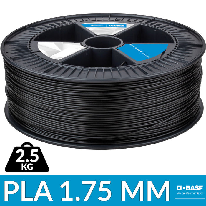 PLA 1,75 mm noir par la firme allemande BASF destiné aux applications professionnelles et compatible avec la majorité des imprimantes 3D de bureau. Format 2,5 kg.