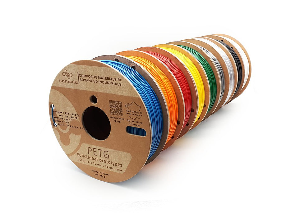 Avec la gamme de filament PETG Nanovia, profitez du savoir-faire du fabricant breton présent sur le marché du consommable 3D depuis de très nombreuses années.